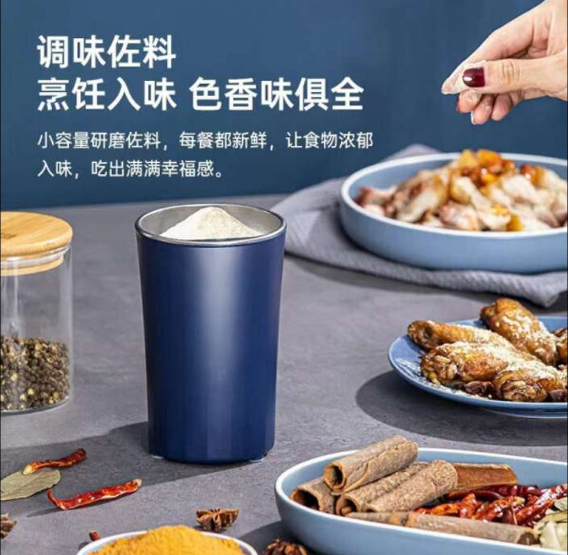 * Effortless One-Touch Operation: A simple press-and-hold button makes grinding intuitive and easy. The transparent lid allows you to monitor the consistency of your grind, giving you complete control over the fineness of the powder.